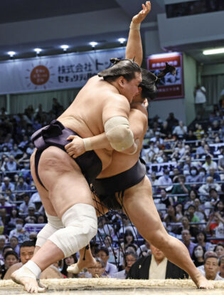 Le sekiwake Kirishima s’est amélioré à 3-0 en renversant le maegashira 3 Gonoyama avec un uwatenage après avoir failli être dépassé par le pousseur-propulseur. Rétrogradé au rang de sekiwake après avoir quitté le tournoi de mai alors qu’il était ôzeki kadoban, le rikishi mongol Kirishima vise un retour en ôzeki avec au moins 10 victoires pendant ce tournoi.