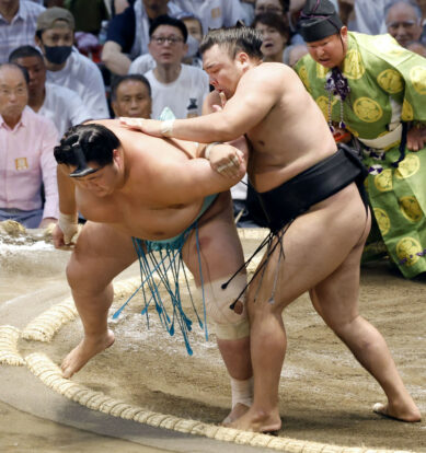 Wakamotoharu a enregistré une victoire directe sur le maegashira 3 Midorifuji, en le repoussant vers le bord et en le giflant, tandis que Hoshoryu a chassé le maegashira 2 Mitakeumi, délogeant finalement l’ancien ôzeki alors qu’il enfonçait ses talons dans la paille.