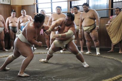 La meilleure façon d’apprécier le sumo, en plus d’aller voir un tournoi, est sans doute de se rendre dans une <em>heya</em> pour vivre une expérience unique qui restera sans doute gravée à jamais dans vos esprits : assister à un entraînement matinal (asageiko en japonais). Dans des locaux souvent exigus, le visiteur participe alors de très près à une session de travail avec tous les lutteurs de la heya, en étant à seulement quelques mètres d’eux et en respirant même leurs effluves.