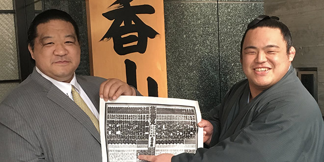 C’est une belle récompense pour Asakayama oyakata (l’ancien ôzeki Kaio) qui forme son premier sekitori (lutteur professionnel).