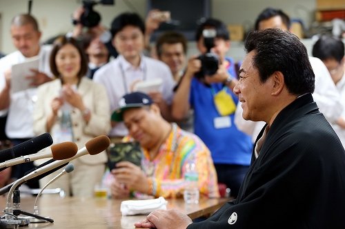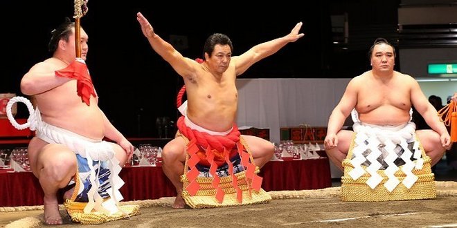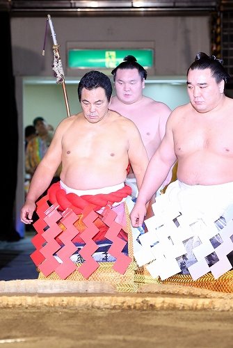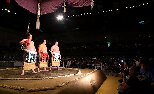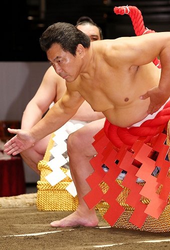 « Ça m’a ramené à mes souvenirs de quand j’étais lutteur » a t-il dit. L’ancien grand champion était accompagné des actuels yokozuna, Hakuho comme porteur de sabre (tachimochi) et de Harumafuji en tant qu’assistant (tsuyuharai ). Ils ont déclaré que c’était un moment d’une grande émotion.