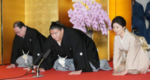 C’est plus de 1 200 invités, dont des supporteurs de l’écurie Kokonoe, qui étaient venus voir l’ancien yokozuna recevoir les honneurs pour celui qui a remporté 31 tournois au cours de sa carrière – le troisième plus grand champion derrière Hakuho et Taiho. Ses 1045 victoires de carrière ont été surpassée seulement par l’ancien ôzeki Kaio.