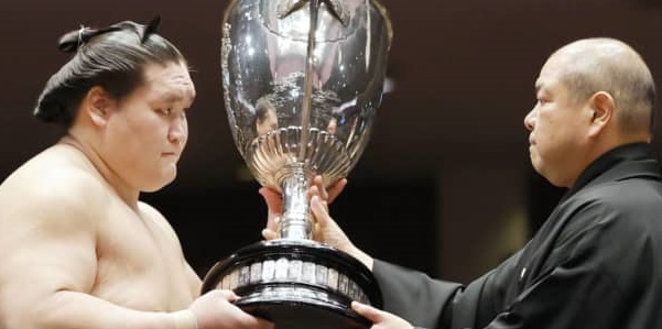 Alors qu’il y a un an, personne n’aurait misé un kopeck sur le makushita N°59, aujourd’hui en cette année 2020, le même rikishi Terunofuji est non seulement remonté en maegashira 17, mais il a remporté son deuxième yushô !! Près de 5 ans après sa première coupe en 2015, c’est bien lui qui a brandit aujourd’hui la mythique coupe de l’Empereur des mains du président de la NHK, l’association japonaise de sumô.
