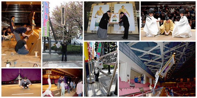Il y a 6 tournois annuels de sumo chacun durant 15 jours. Dès la fin d’un basho les préparatifs commencent déjà pour organiser les tournées régionales (jungyô) qui vont suivre. Le nouveau bunzuke qui déterminera le classement des lutteurs en fonction des résultats qu’ils ont obtenus est en pleine élaboration par les oyakata (entraîneurs) et les gyôji (arbitres). Quelques jours avant le début du tournoi, les yobidashi se mettent à la tâche en construisant un tout nouveau dohyô qui servira durant les deux prochaines semaines. Quand tout est prêt la veille du honbasho, une cérémonie bien curieuse et hautement ritualisée connue sous le nom de dohyô matsuri a lieu afin de bénir l’espace de combat.