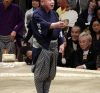 Hideo, dernier appel du tateyobidashiLe tate-yobidashi lors de l’appel des lutteurs