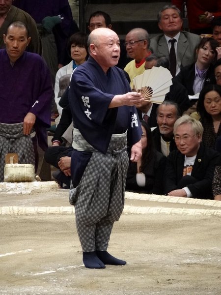 « Entonnant appeler les noms des lutteurs est la tâche la plus difficile. Il ne suffit pas de simplement crier » a déclaré Hideo.