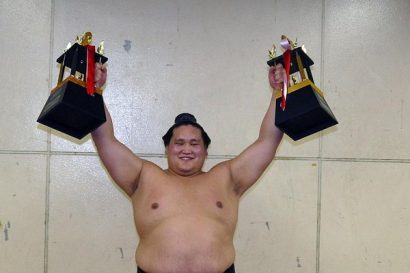 “I’ll shoot for double-digit wins at the next tournament and hopefully that will lead to victory,” said Terunofuji, who won both the Outstanding Performance Prize (1) and Fighting Spirit Prize (2). “Now I just want to take a long rest.”