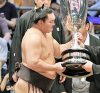 remporte son 30ème titre en battant Harumafuji en finale. Gôeidô en triomphant de Kotoshogiku se voit promu ôzeki.
