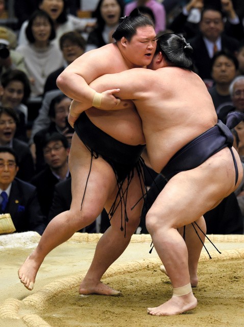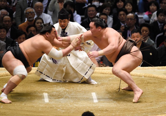 Dans la rencontre qui opposait les seuls lutteurs avec juste deux défaites et donc encore un espoir de titre, Kisenosato (13-2) a maîtrisé de bout en bout Goeido (12-3) pour le sortir en ligne droite.