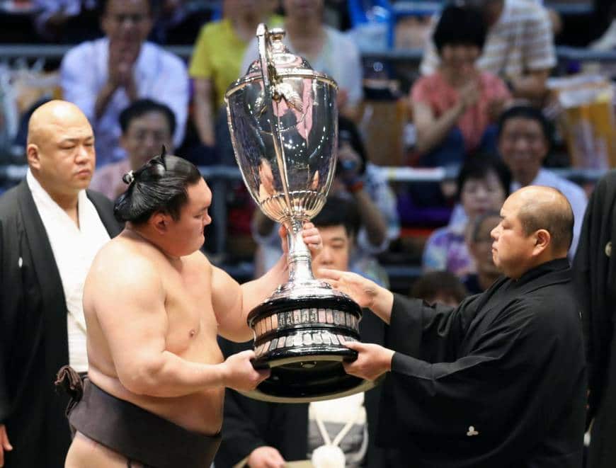 Mitakeumi, qui est le seul lutteur a avoir vaincu Hakuho dans ce tournoi, s’est vu remettre un shukun shô (meilleure performance) pour la deuxième fois consécutive.