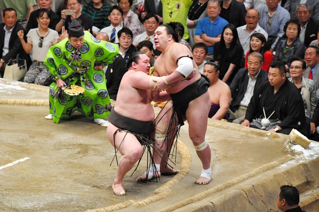 Après avoir sauvé in extremis son rang, l’ôzeki Goeido s’est incliné face au sekiwake Tamawashi (10-5).