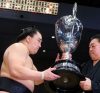 Harumafuji très heureux après avoir été mis en doute sur son réel potentiel de yokozuna vient de prouver qu’il est encore digne de confiance et que sa tsuna est bien méritée même si les mauvaises langues diront que son combat final ne reflétait pas celui d’un vrai yokozuna en cherchant la fuite.