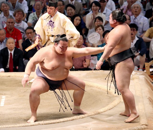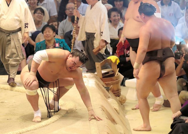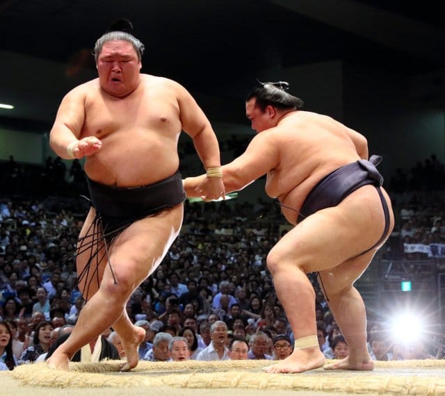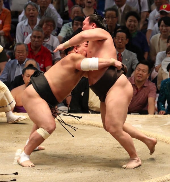 Kisenosato est resté dans la course au titre, prêt à rencontrer les séries éliminatoires en gardant son sang-froid après sa victoire sur Goeido. Lors de leur combat, Goeido a été facilement repoussé vers le bord de l’anneau par son collègue plus expérimenté. Avec un score de 7-8, Goeido sera à l’instar de Kotoshogiku kadoban en septembre.