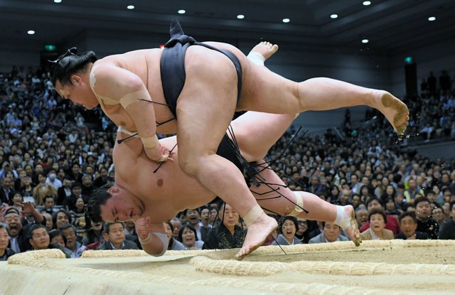 Kisenosato, qui est devenu le premier japonais à être promu yokozuna depuis 1998, s’est agrippé au mawashi de Terunofuji et l’a renversé sur le bord de l’anneau.
