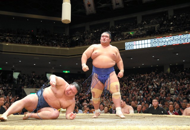 And the 31-year-old bruiser from Fukuoka, who was promoted to ozeki in the fall of 2011, did not disappoint, working ozeki Goeido (4-11) up against the ridge, thrusting him down to wrap up the tournament with a 14-1 record and send spectators into raptures at Ryogoku Kokugikan.