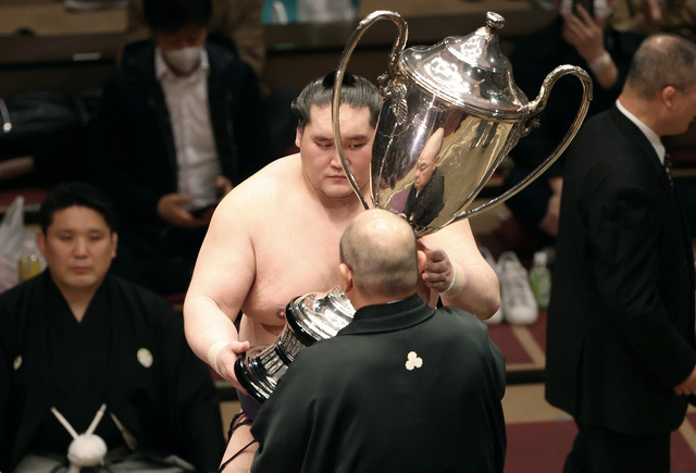 Même si la victoire de Terunofuji a mis fin aux minces espoirs d’Aoiyama de remporter la coupe, le Bulgare a reçu son quatrième prix pour son esprit combatif.