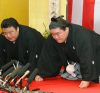 Gôeidô est promu ôzeki pour le tournoi de septembreGôeidô lors de la cérémonie pour sa promotion au rang d’ôzeki