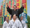 Goeido soulevé par ses camarades de la Sakaigawa beya