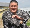 Goeido soulève une carpe lors de sa promotion comme ozeki
