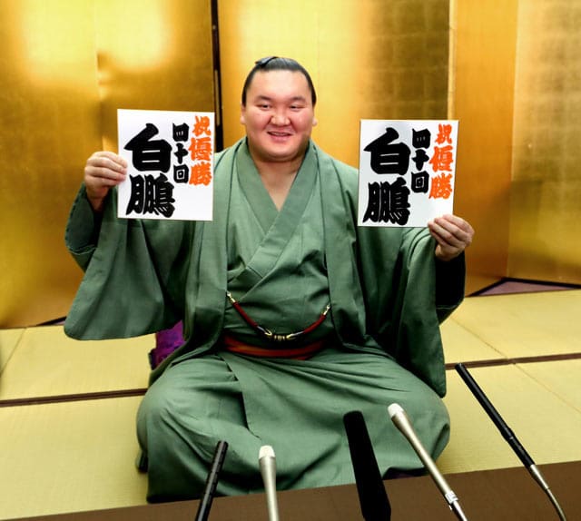 Malgré des questions sur le sort de son camarade Harumafuji après avoir agressé Takanoiwa, Hakuho a déclaré qu’il avait pris sa part de responsabilité en abordant le sujet et en s’excusant auprès des fans dans son discours de victoire dimanche.
