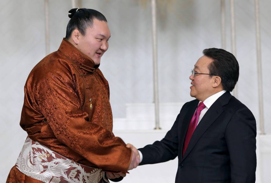 « Vous avez atteint un record historique dans le sumo professionnel et vous avez redonné ses lettres de noblesse à la Mongolie » a déclaré Elbegdorj.
