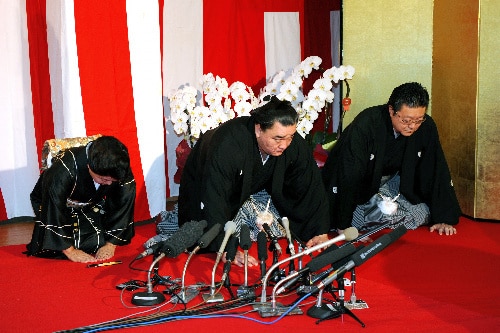 C’est enfin officiel, Harumafuji est devenu aujourd’hui yokozuna suite à ses excellentes performances de l’aki bashô 2012. Pour rappel, la promotion en tant que yokozuna est possible lorsqu’un lutteur de grade ôzeki remporte deux yûshô consécutifs ou bien obtient une performance équivalente (au moins 38 victoires sur les 3 derniers hon-basho). Pour plus d’informations sur ce sujet, consultez notre article dédié aux promotions.