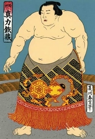 Depuis la période des États en Guerre jusqu’à la période Edo (1603-1867), de nombreux daimyo commencèrent à offrir leur mécénat aux sumotoris les plus forts. Ceux employés par un daimyo ne recevaient pas seulement un généreux salaire, mais se virent accorder aussi le statut de samurai. Ils étaient aussi présentés avec un tablier de cérémonie brodé au nom du seigneur mécène. Un tel mécénat garantissait un bon niveau de vie, et beaucoup de rikishi rivalisaient avec d’autres pour taper dans l’œil d’un daimyo. La feuille des rangs listait le nom du fief qu’ils servaient davantage que leur lieu de naissance.