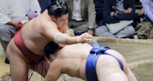 In the day’s final bout, Endo, wrestling in one of the sport’s elite ranks for the first time in his career, came in very low against the Mongolian yokozuna, who held his ground and eventually yanked the komusubi off balance and down to the sandy surface.