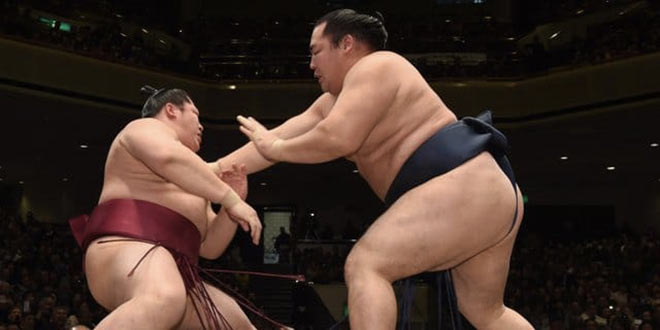 Hakuho, de retour après une blessure à l’orteil, a remporté sa confrontation féroce avec le maegashira Tamawashi. Après que Tamawashi ait repoussé la charge de Hakuho avec quelques poussées violentes à sa gorge, les deux Mongols se sont fait face, immobiles, dans une bataille de regards.
