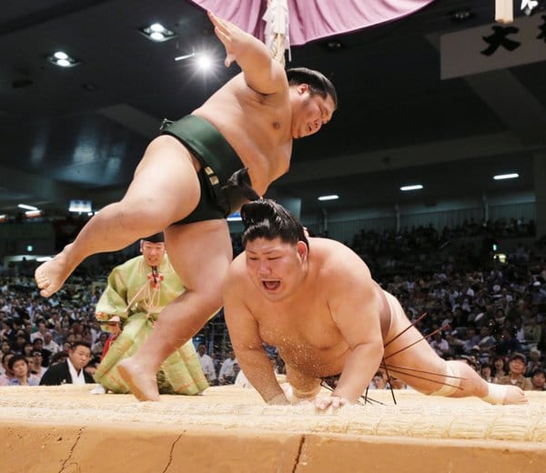 Après un faux départ Hakuho a réussi par sortir le komusubi Aminishiki même si la victoire a été un peu juste. Celui qui devrait devenir le plus grand yokozuna de tous les temps ne veut laisser aucune chance à ses opposants. Le mongol est bien décidé à s’emparer pour une quatrième consécutive du trophée de Nagoya.