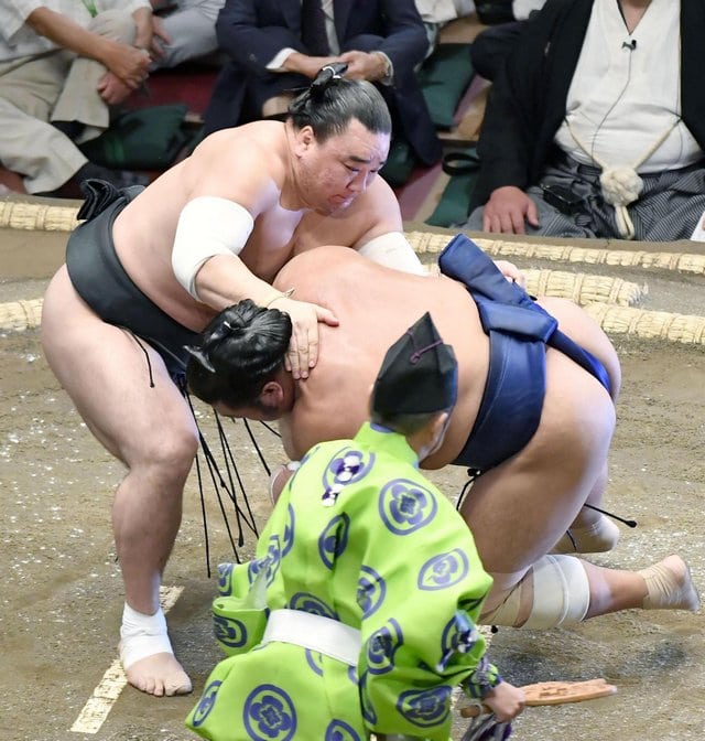 The two sekiwake in the field, Mitakeumi and Yoshikaze, both lost to third-ranked maegashira wrestlers Onosho and Chiyotairyu, respectively.