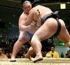 Avec un score final de 13-2 lors du précédent tournoi en mars à Osaka, Kisenosato a vite pris le contrôle du combat peu de temps après la charge avant de sortir sans peine le maegashira 1 Myogiryu.