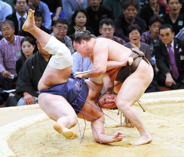 And he showed that was no fluke as he spotted an opening and tore into Kakuryu before sending him flying off the dohyo.