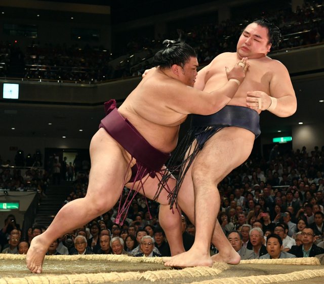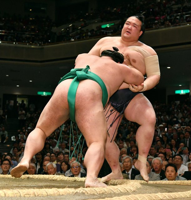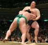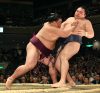 Harumafuji a également gagné de manière convaincante. Le mongol a vaincu le sekiwake Kotoshogiku en l’encerclant dans ses bras avant de le conduire hors de l’anneau.