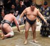 Kotoshogiku won his maiden championship here a year ago but will be demoted from ozeki should he post a losing record this month. He also made a decent start to the tourney, keeping up with Mongolian No. 2 maegashira Arawashi’s movements to steer him out in their first career meeting.