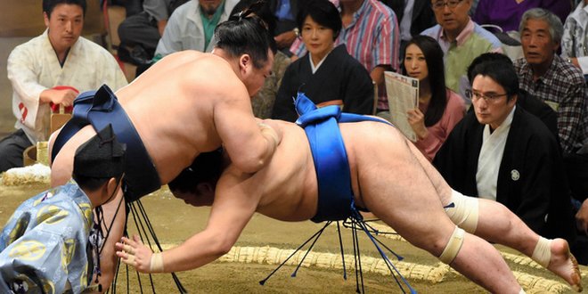 Kyokutenhô qui a fêté hier ses 40 ans fait preuve d’une incroyable longévité dans un sport où les blessures sont courantes. L’un des tout premiers mongols à avoir ouvert la voie à tant d’autres est toujours là, bien présent sur le dohyô! Comme cadeau d’anniversaire le doyen s’est offert une belle victoire contre Okinoumi.