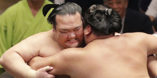 Hakuho beat Tamawashi, slapping the komusubi’s face for a belt-hold and a quick push out, while Kakuryu drove out komusubi Takakeisho in the day’s final bout.