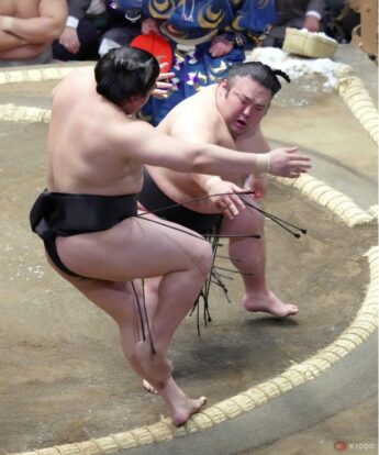Avec le forfait du Yokozuna Terunofuji pour ce tournoi, Takakeisho est le rikishi le mieux classé étant désormais le seul ôzeki. Il affrontait aujourd’hui Wakamotoharu qui lui disputait son premier match en tant que san’yaku. La fameuse poussée de Takakeisho, toujours surpuissante, aura raison de lui. Le lutteur de la Tokiwayama beya dispute un des plus importants tournoi de sa carrière, car s’il reportait ce tournoi de Janvier, il deviendrait Yokozuna. Ses matchs et ses résultats sont donc particulièrement à suivre.
