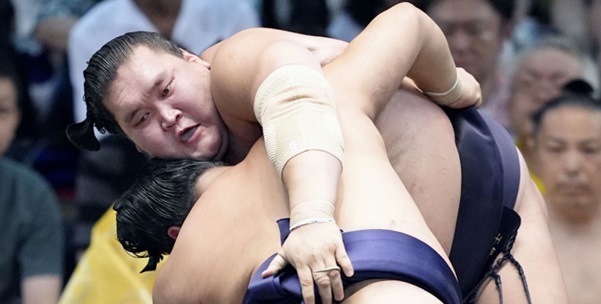 L’ôzeki Takakeisho, menacé de rétrogradation, était à la peine dans la lutte contre le maegashira 1 Meisei, qui s’est rapidement frayé un chemin pour la surprise du jour. Takakeisho a besoin d’un kachi-koshi à 8 victoires pour rester ôzeki après s’être retiré lors de la deuxième journée en mai.