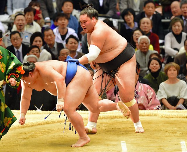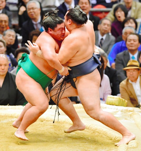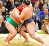 With a pair of bad knees limiting his mobility for over a year, Terunofuji is showing the kind of power and speed that earned him the championship of the May 2015 grand tournament. Last year, the ozeki managed eight wins just three times, and entered this tourney with his ozeki ranking on the line.