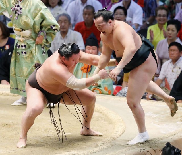 Onosho defeated ninth-ranked Tokushoryu (3-7), while Takarafuji beat Georgian No. 16 Gagamaru (3-7) with a twisting overarm throw.