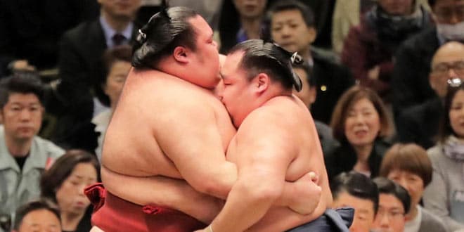 In another of the evening’s big contests, Tochinoshin (7-3) nearly flew out of the ring when Goeido (7-3) sidestepped the Georgian on the initial charge.