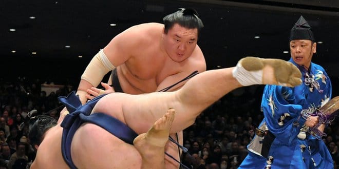 Despite a stirring win over Kisenosato on Monday, Kotoshogiku (3-7) could not keep pace with Goeido (7-3) in the other all-ozeki clash. Having suffered a losing record in November’s grand tournament, Kotoshogiku needs eight wins to retain his elite status as an ozeki and can afford only one more loss.