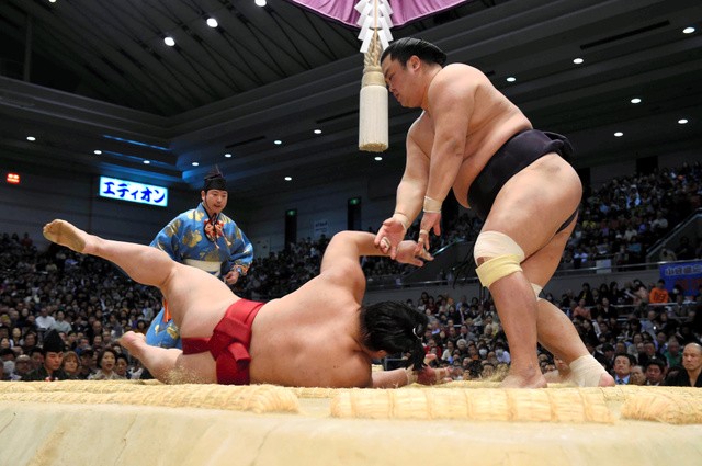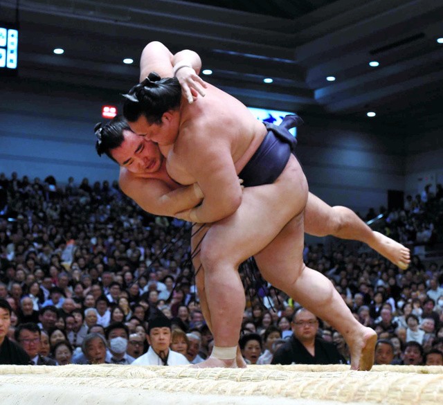 Kisenosato on Wednesday faces Hakuho, who overwhelmed ozeki Terunofuji (6-4) in marching to his ninth consecutive win. Hakuho has dominated Kisenosato over his career, having won 41 of 54 past meetings.