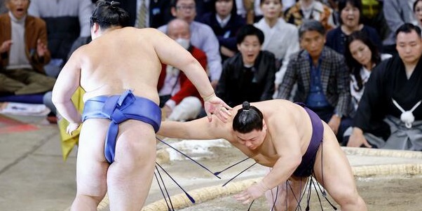Le jeune espoir Yoshinofuji a créé la surprise en battant le yokozuna Onosato lors de la 10ème journée de combats du Kyushu bashô ce mardi au Kokusai Center de Fukuoka, laissant le yokozuna, favori du tournoi, à égalité avec le jeune espoir ukrainien Aonishiki avec 9 victoires pour 1 défaite.