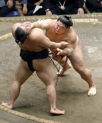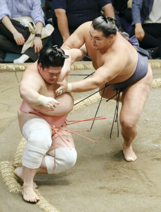 Ce dernier, ancien sekiwake, a confirmé son kachi-koshi en battant le prometteur jeune espoir ukrainien Aonishiki lors de l’un des combats phares de la journée. Avec des styles similaires, mais un écart d’expérience considérable, les deux hommes se sont livrés un combat acharné avant que Wakatakakage ne renverse le maegashira 9 Aonishiki, 21 ans, d’un katasukashi.
