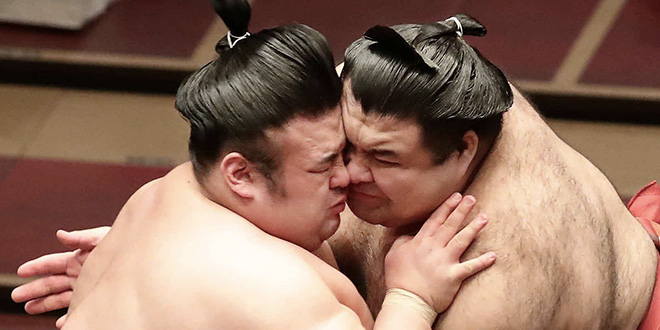 Le komusubi Daieisho, vainqueur du tournoi de janvier, a amélioré à 5-5 en s’imposant rapidement contre Hokutofuji (6-4).