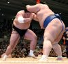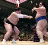 Le nouveau sekiwake Terunofuji s’est imposé de manière magistrale en battant Kotoshogiku. Portant, dès le tachiai l’ôzeki a donné toute sa puissance pour repousser Terunofuji vers la sortie mais le mongol a parfaitement résisté aux assauts répétés de son adversaire pour s’emparer de la victoire. A l’aide de sa main gauche, le sekiwake a saisi le mawashi de l’ôzeki avant de l’expulser du dohyô le nez ensanglanté.