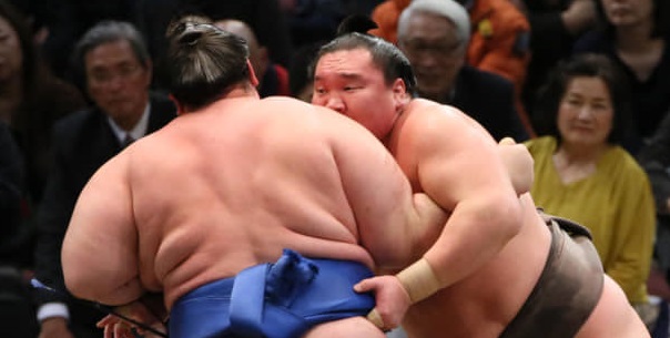 Il est rejoint par l’ôzeki Takakeisho, qui a appliqué une fois de plus sa technique du bulldozer contre le lourd M4 Kotoyuki. Après un coup de casque terrible, il l’a repoussé en force et sans fioritures à l’extérieur du cercle sacré.