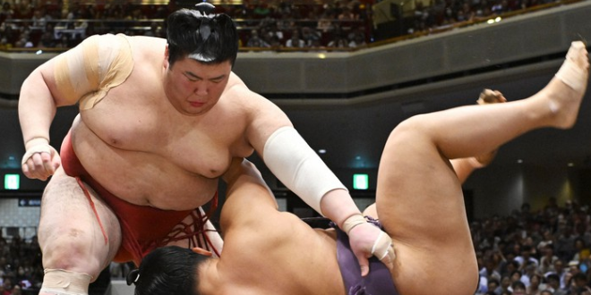 Takayasu (8-3), qui a perdu contre Atamifuji mardi et qui semble s’être blessé à la jambe, n’a montré que peu de résistance lorsque l’ancien ozeki a été éliminé par le sekiwake Daieisho (7-4).